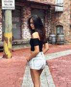 Pumping Gas With Her Ass Hanging Out Of Her Booty Shorts